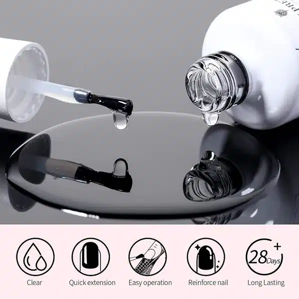 • Gel constructor (gel builder) en botella, de viscosidad Media , autonivelante , bajo en aroma.  Permite moldear con facilidad con el pincel y construir uñas fuertes, duraderas, y de aspecto natural.