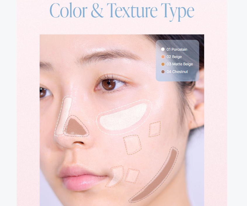 Color Matte Beige: Natural Beige Medio. Textura gruesa y matte. Recomendado para tonos de piel del 22 al 23 (en cushions o bb creams coreanas)