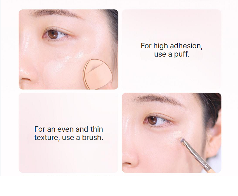 El innovador envase incorpora un orificio central de fácil apertura, que permite usarlo en cualquier momento y lugar sin complicaciones. Su textura sedosa y ligera se adhiere perfectamente a los dedos, esponjas o brochas, garantizando una aplicación suave y uniforme sin grumos.