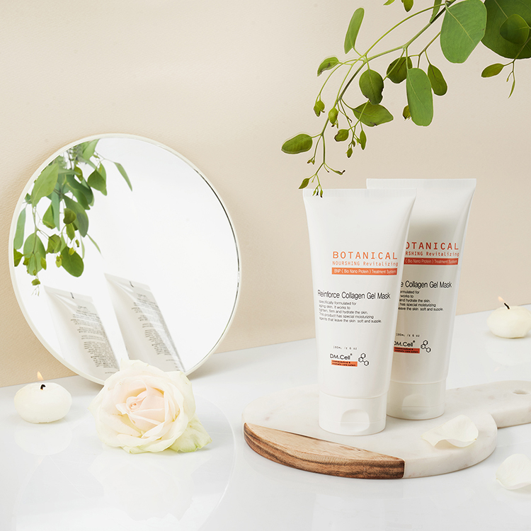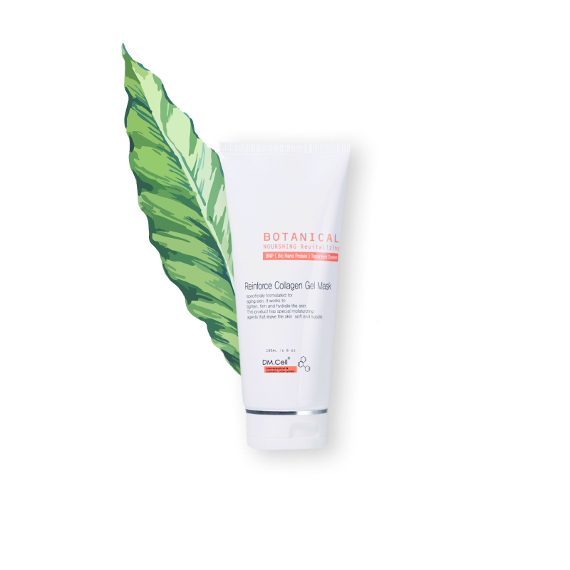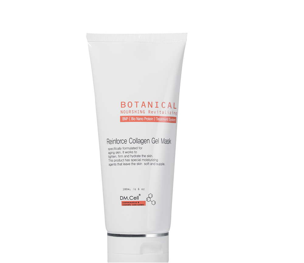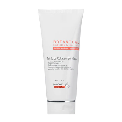 La Reinforce Collagen Gel Mask de DM.Cell es una mascarilla profesional de acción intensiva, formulada en textura gel para una óptima absorción y eficacia. Su principal activo, el colágeno marino, de origen natural, trabaja en sinergia con enzimas marinas para reponer los niveles esenciales de colágeno, mejorar visiblemente la elasticidad cutánea y reforzar la estructura de la piel.