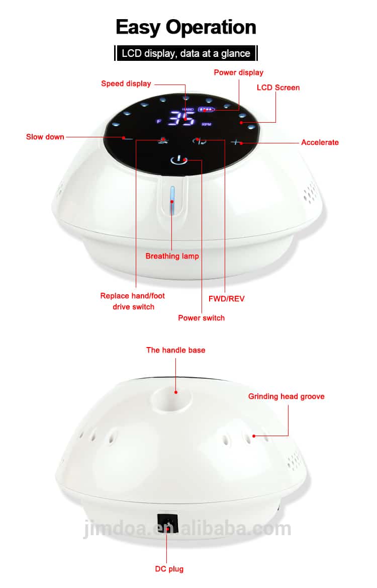 • Velocidad de hasta 30.000 RPM : Motor incorporado de alta velocidad que es lo suficientemente potente y suave para uñas remoción de uñas acrílicas , esmalte permanente y limpieza de cutículas , piel muerta y callosidades.