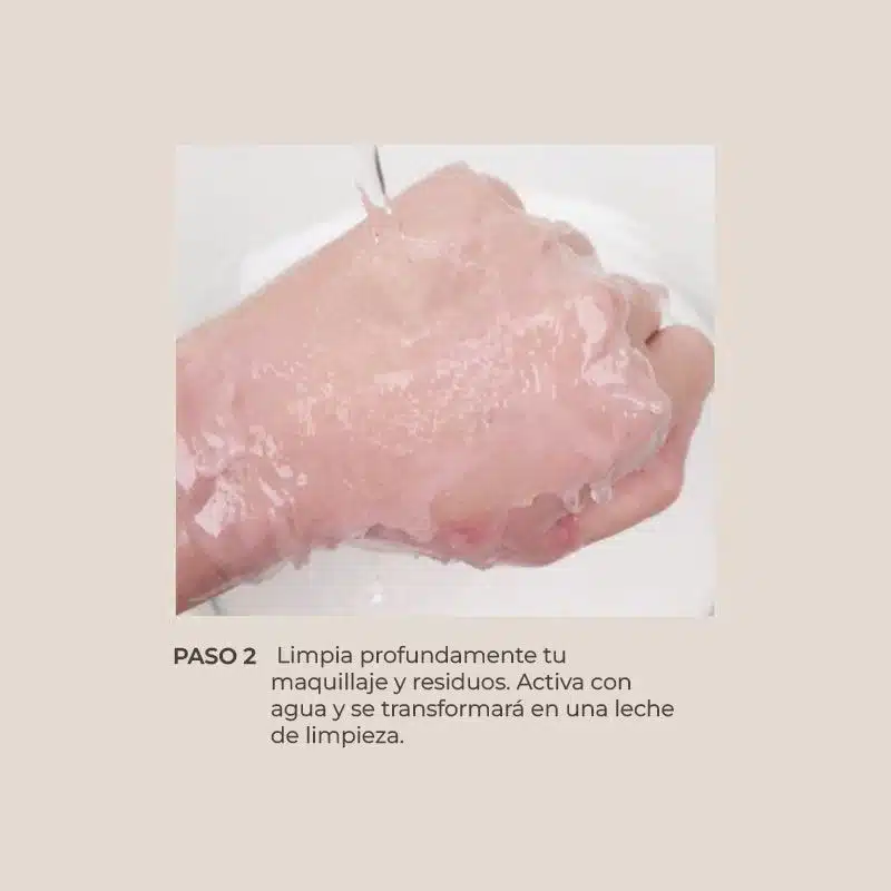 • Al entrar en contacto con el calor de la piel se convierte rápidamente en un aceite que remueve maquillaje, restos de protector solar y suciedad.