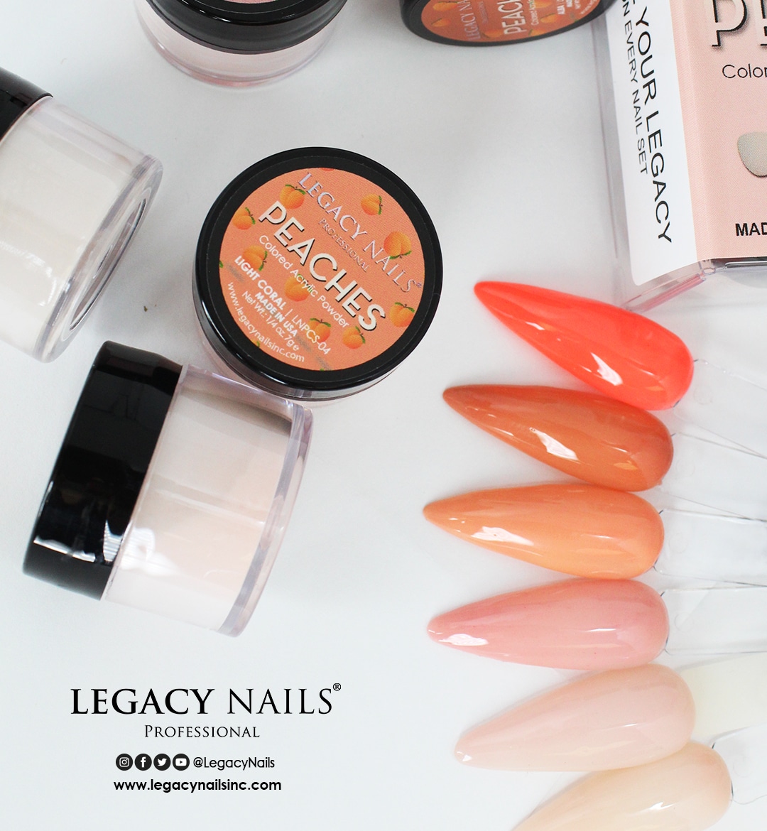 LEGACY NAILS Polvo Acrilico Coleccion Peaches 6 piezas