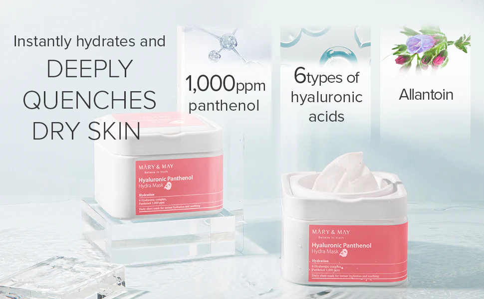 Mary & May Hyaluronic Panthenol Hydra Mask es una mascarilla que se adapta suavemente en la piel.