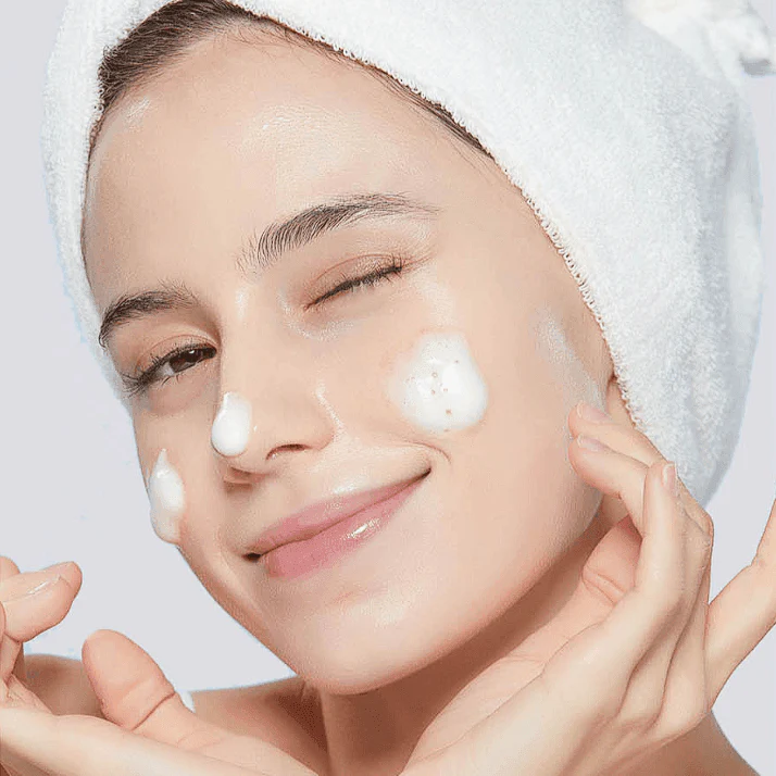 3. Aclara bien cualquier residuo con agua tibia para cuidar la barrera cutánea y la elasticidad de la piel. Enjuagar con abundante agua antes de pasar a los siguientes pasos de la rutina de cuidado facial.