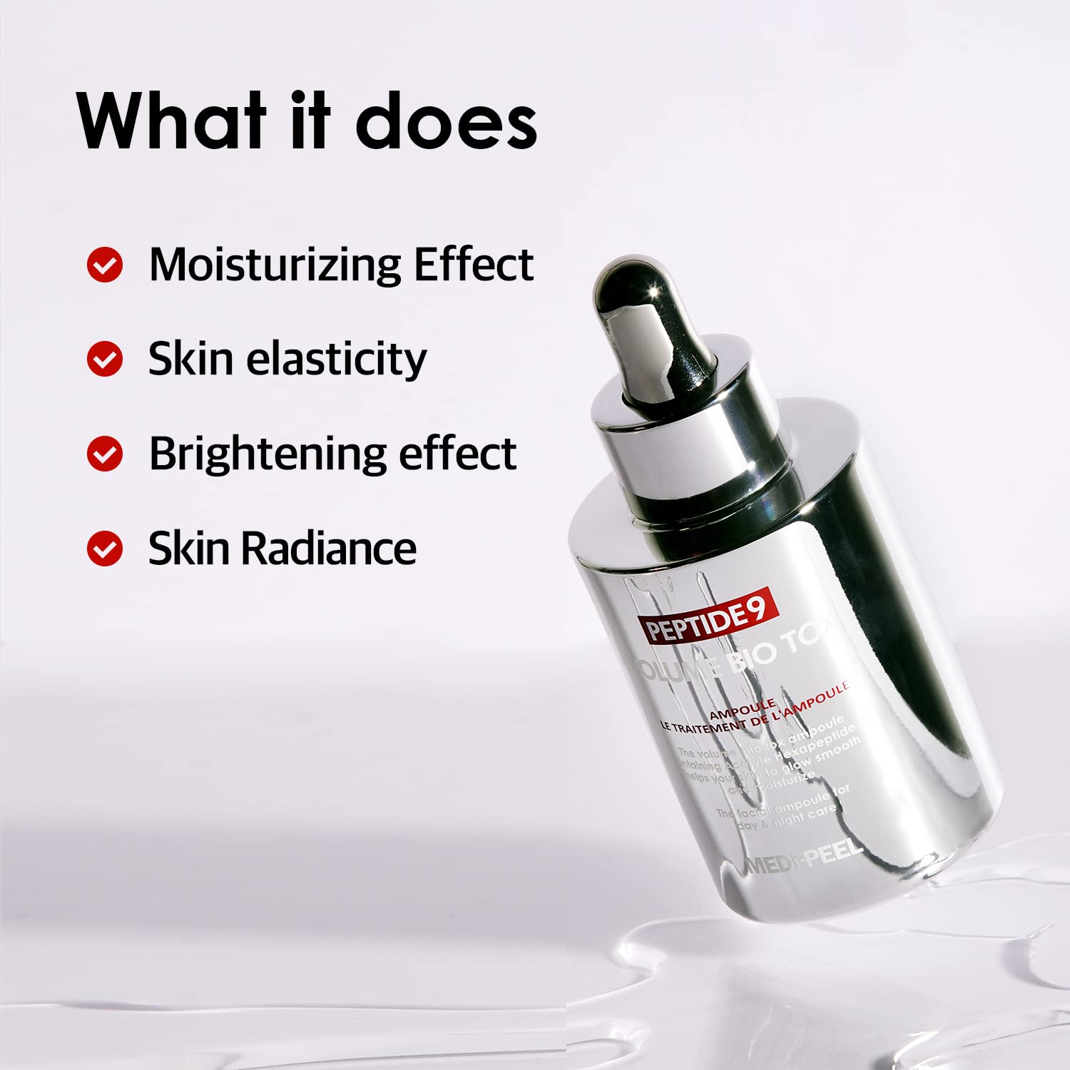 Ingredientes: Water, Glycerin, Butylene Glycol, Niacinamide, Sodium Lactate, 1,2-Hexanediol, Gellan Gum, Ethylhexylglycerin, Adenosine, Disodium EDTA, Juniperus Communis Fruit Extract, Eucalyptus Globulus Leaf Extract, Glyceryl Polymethacrylate, Centella Asiatica Extract, Propylene Glycol, Polygonum Cuspidatum Root Extract, Scutellaria Baicalensis Root Extract, Propanediol, Camellia Sinensis Leaf Extract, Glycyrrhiza Glabra (Licorice) Root Extract, Sodium Hyaluronate Crosspolymer, Chamomilla Recutita (Matricaria) Flower Extract, Rosmarinus Officinalis (Rosemary) Leaf Extract, Fructan, Hydrolyzed Glycosaminoglycans, Sodium Hyaluronate, Glycine, Serine, Glutamic acid, Hydrolyzed Elastin, Hydrogenated Polyisobutene, Aspartic acid, Hydrolyzed Hyaluronic Acid, Leucine, Cynanchum Atratum Extract, Astaxanthin, Desamido Collagen, Sorbitan Laurate, Alanine, Lysine, Arginine, Tyrosine, Phenylalanine, Proline, Valine, Threonine, Isoleucine, Histidine, Cysteine, Methionine, Palmitoyl Tripeptide-5, Hydrolyzed Collagen, Hydroxyethylcellulose, Acetyl Dipeptide-1 Cetyl Ester, Sodium Acetylated Hyaluronate, Palmitoyl Tetrapeptide-7, Palmitoyl Tripeptide-1, Palmitoyl Oligopeptide, Acetyl Hexapeptide-8, Copper Tripeptide-1, Hyaluronic Acid, Oligopeptide-29, Oligopeptide-32, Raspberry Ketone, Palmitoyl Pentapeptide-4, Anemarrhena Asphodeloides Root Extract, Polysorbate 80, PEG-60 Hydrogenated Castor Oil, Benzyl Glycol, Alcohol, Fragrance
