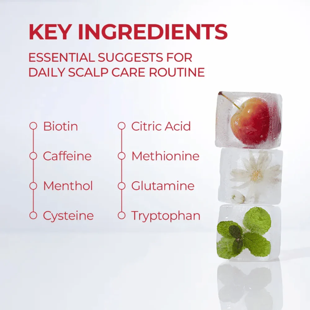 Ingredientes: Water, Alcohol Denat., Fragrance, Butylene Glycol, 1,2-Hexanediol, Dipropylene Glycol, Caffeine, Polysorbate 80, Glycerin, Menthol, Betaine, Ethylhexylglycerin, Citric Acid, Pyrus Malus (Apple) Fruit Extract, Biotin, Glycine, Glutamic Acid, Glutamine, Lysine, Leucine, Methionine, Valine, Serine, Cysteine, Asparagine, Aspartic Acid, Isoleucine, Alanine, Arginine, Ornithine, Carnitine, Tyrosine, Threonine, Tryptophan, Phenylalanine, Proline, Histidine, Gardenia Florida Fruit Extract, Dextrin, Hydrogenated Lecithin, Ceramide NP, Hyaluronic Acid, Sodium Hyaluronate, Hydrolyzed Hyaluronic Acid, Sodium Hyaluronate Crosspolymer, Hydrolyzed Glycosaminoglycans, Potassium Hyaluronate, Hydrolyzed Sodium Hyaluronate, Mentha Rotundifolia Leaf Extract, Camellia Sinensis Leaf Extract, Thymus Vulgaris (Thyme) Leaf Extract, Dipropylene Glycol, Denatonium Benzoate, Linalool, Limonene, Benzyl Benzoate, Benzyl Salicylate, Citral, Citronello, Cinnamal, Alpha-Isomethyl Ionone, Eugenol, Geraniol, Coumarin, Hexyl Cinnamal