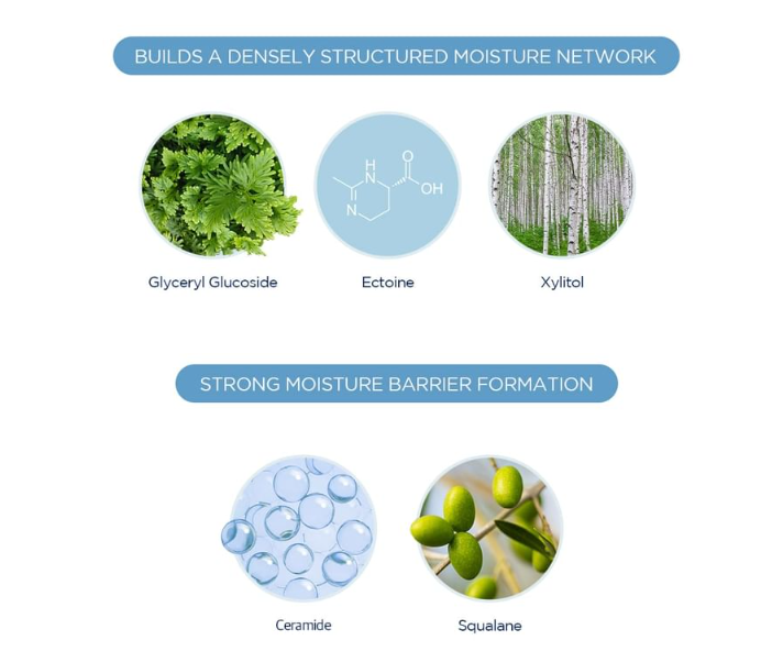 Para brindar una hidratación completa, contiene ceramidas, escualeno y gliceril glucósido, activos que restablecen los niveles de humedad, refuerzan la barrera cutánea y dejan la piel con una sensación flexible y saludable.