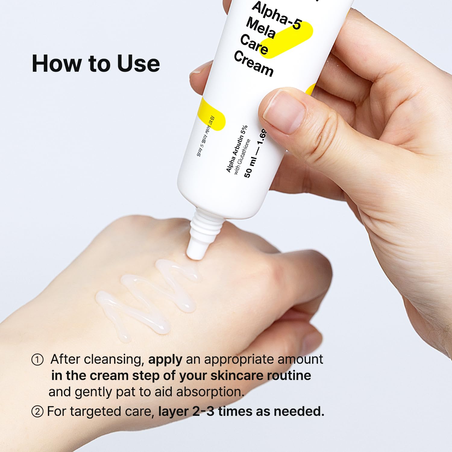 Ingredientes: Water(Aqua), Dipropylene Glycol, Alpha-Arbutin(5%), Glycerin, Caprylic/Capric Triglyceride, Niacinamide, 1,2-Hexanediol, Cetearyl Alcohol, Glyceryl Stearate, Carbomer, Ammonium Acryloyldimethyltaurate/VP Copolymer, Tromethamine, Xanthan Gum, Allantoin, Adenosine, Glutathione, Hippophae Rhamnoides Water, Butylene Glycol, Aronia Melanocarpa Fruit Extract, Copper Tripeptide-1, Palmitoyl Pentapeptide-4, Acetyl Hexapeptide-8, Palmitoyl tripeptide-1, Palmitoyl Tetrapeptide-7