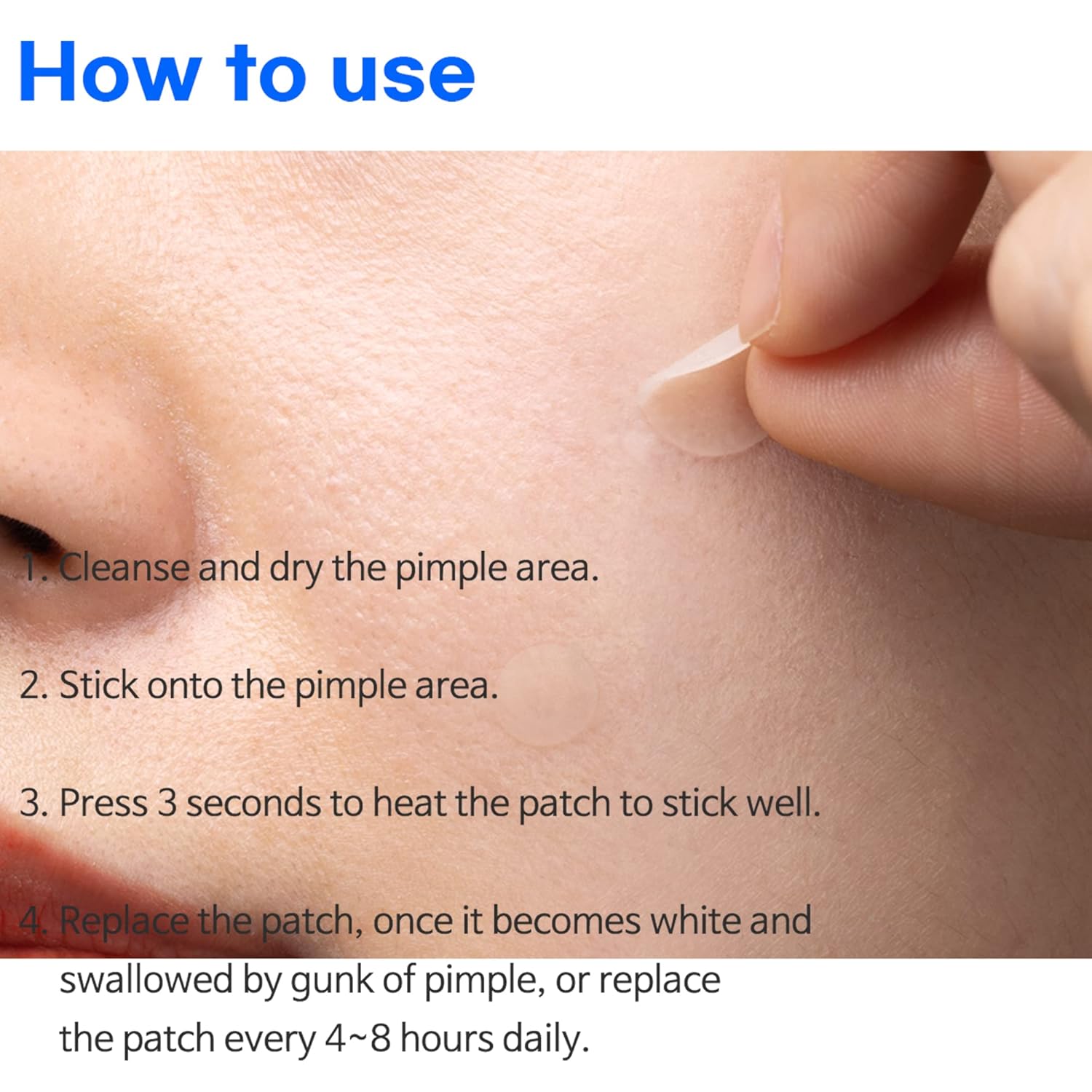 2.Reemplace o quite el parche dependiendo de la condición de la piel, si el centro del parche está hinchado y blanco debido al exudado.